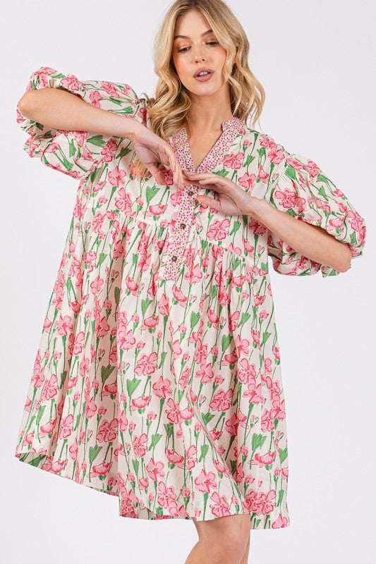 ADORA Applique Round Neck Short Sleeve Shift Dress