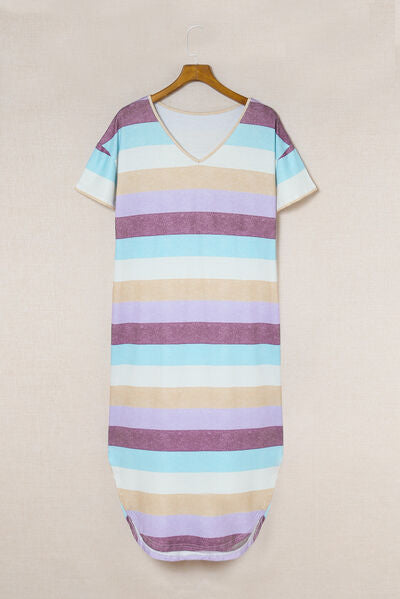Sold outStriped V-Neck Curved Hem Midi Dress