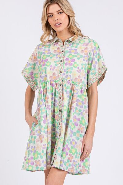 SAGE+FIG Floral Babydoll Short Sleeves Dress