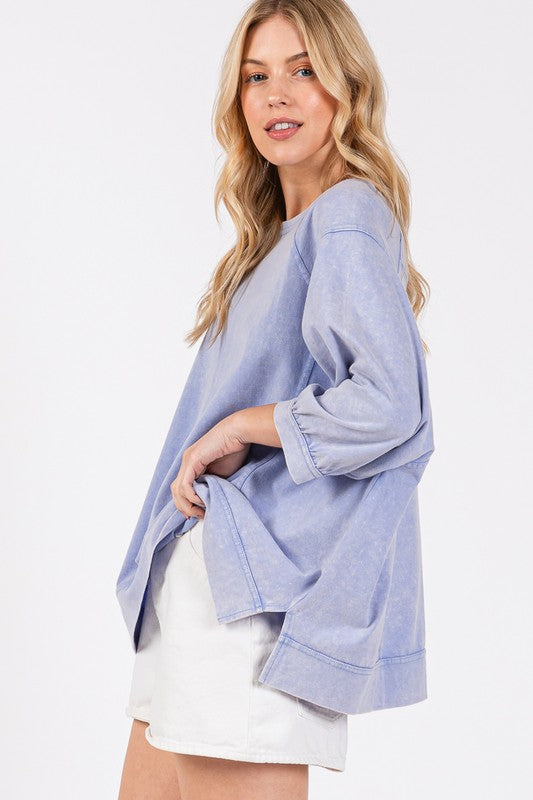 SAGE + FIG Mineral Washed Side Slit Round Neck Sweatshirt