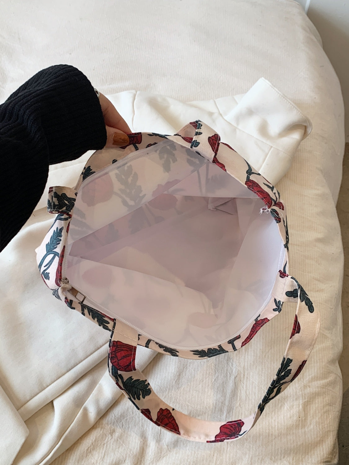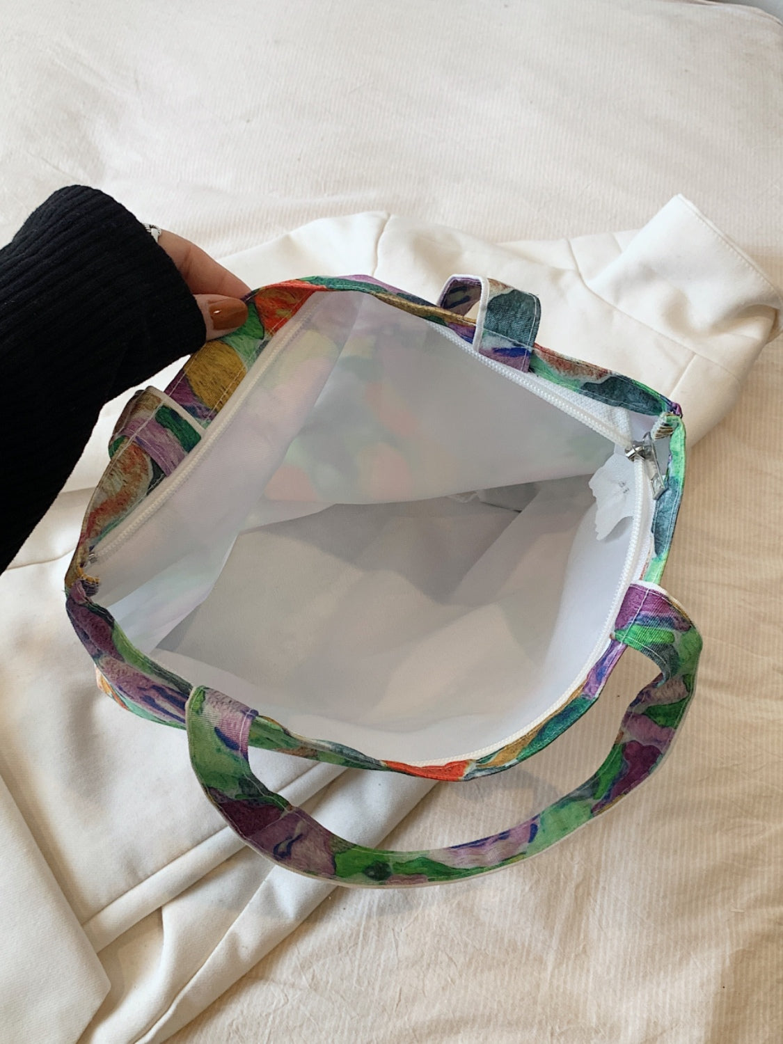 Printed Canvas Handbag with Zipper