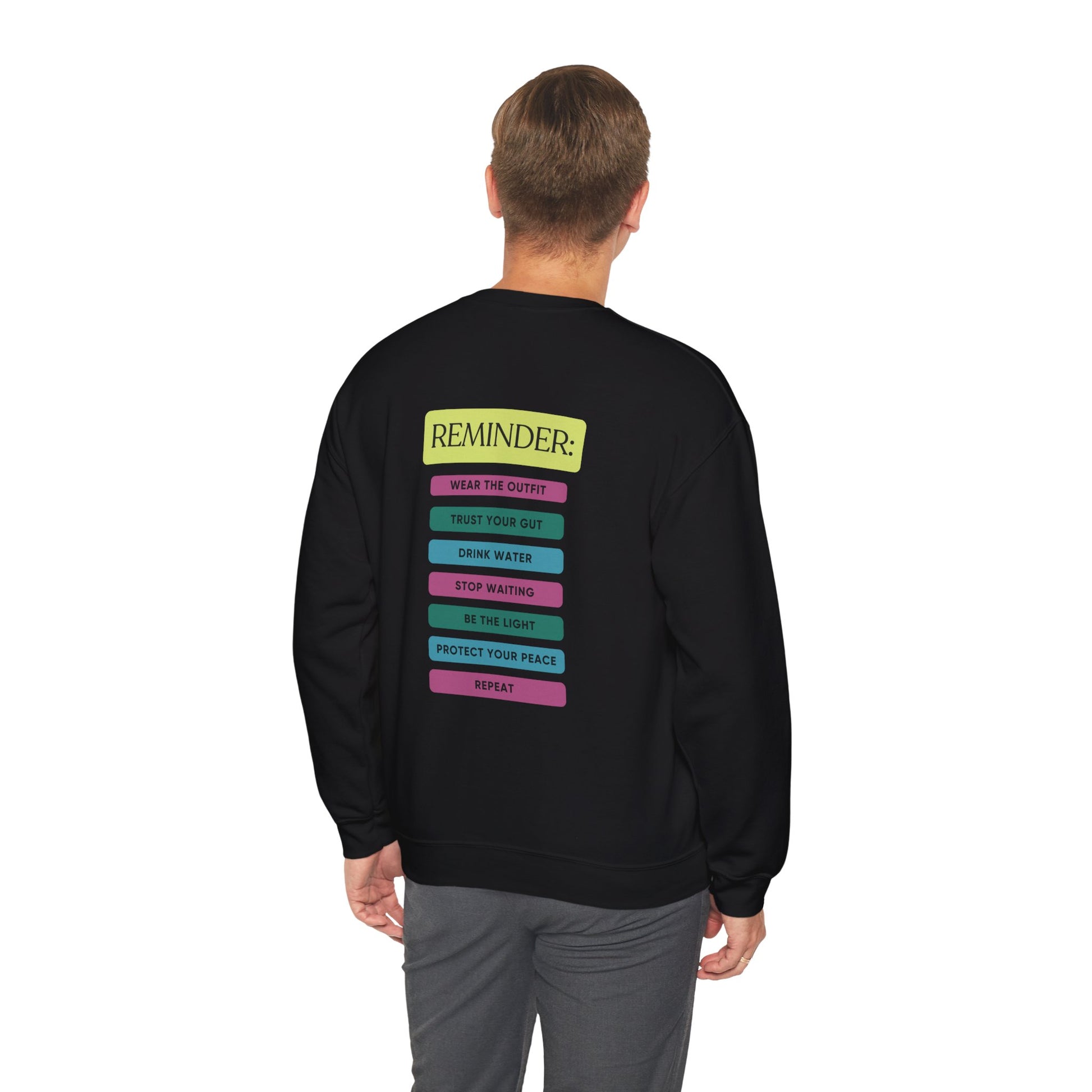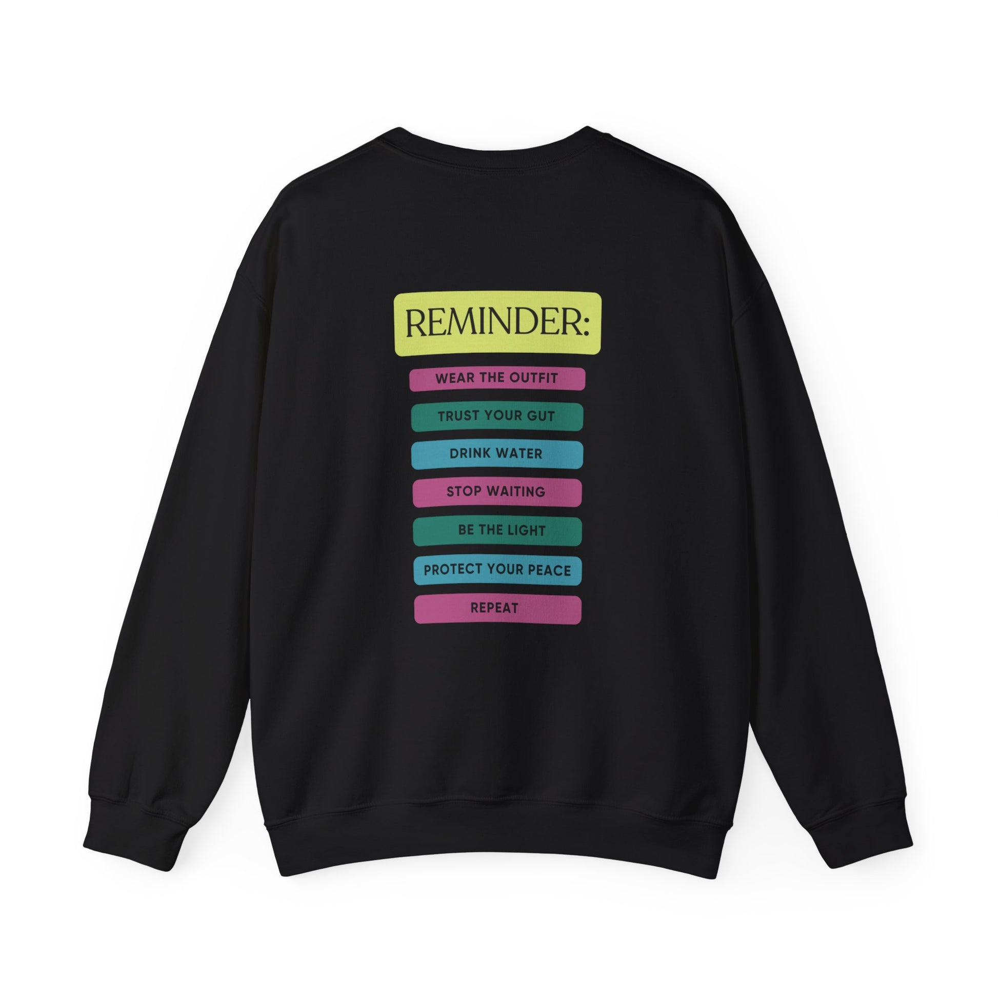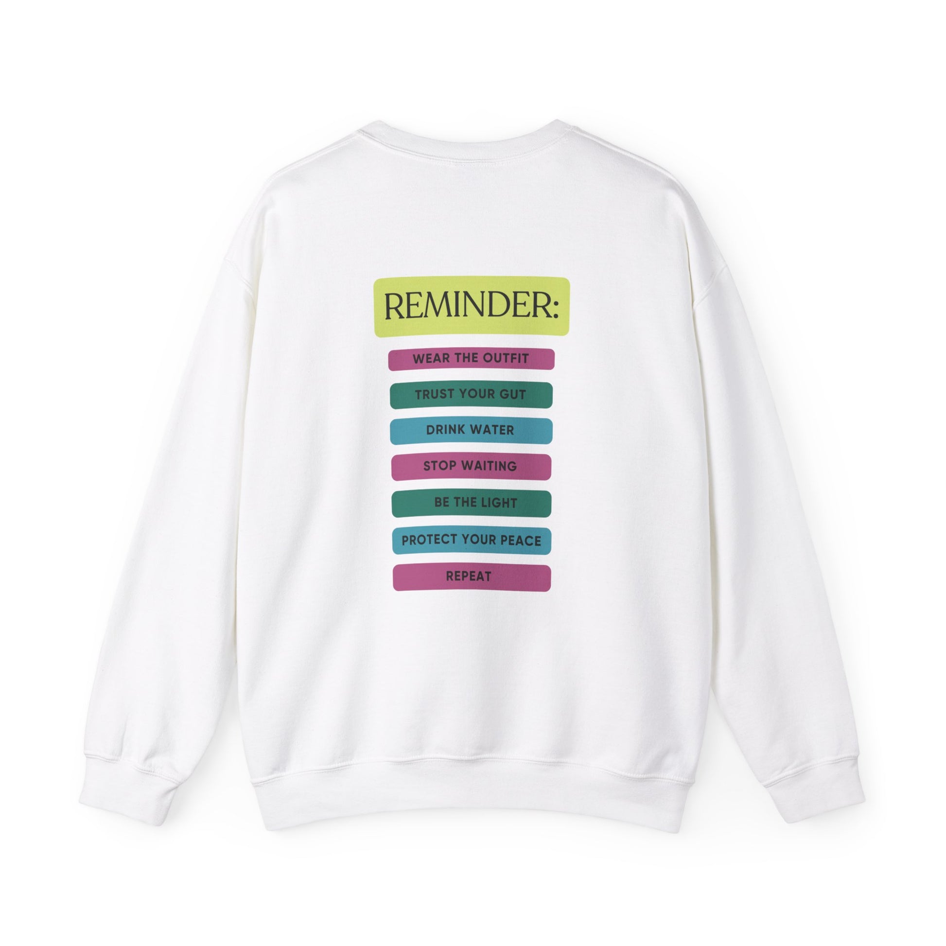 Original design from The Merry Moore. The Reminder sweatshirt is a fun, colorful addition to your wardrobe to start the new year.