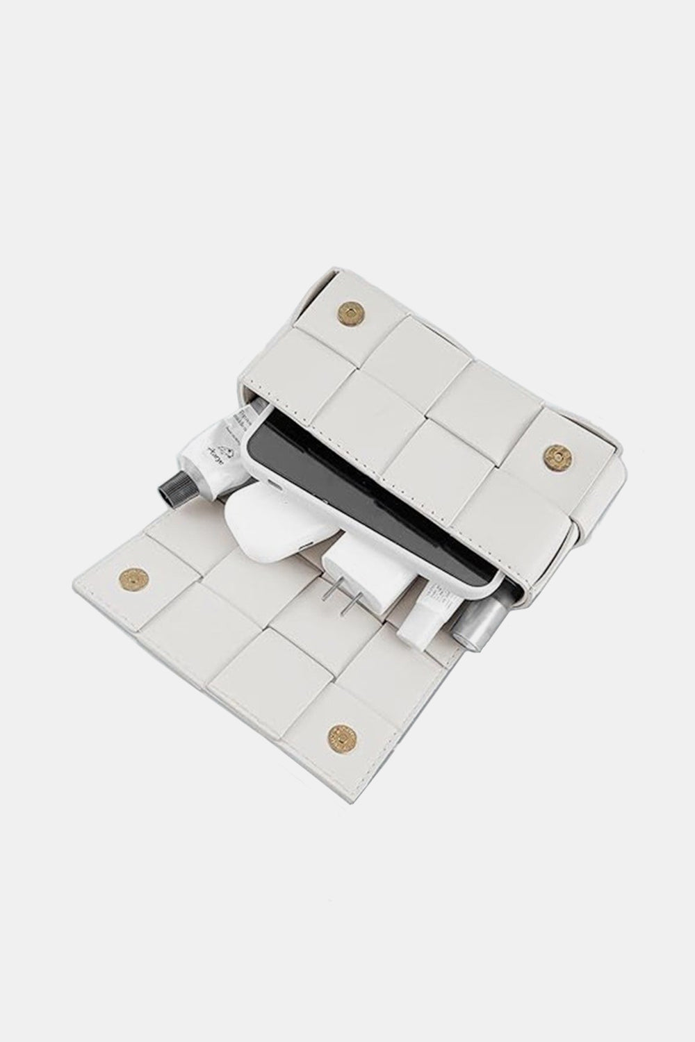 Vegan Leather Woven Crossbody Bag is a stylish and sustainable accessory made from vegan leather. This crossbody bag is not only fashionable but also eco-friendly, making it a great choice for those who care about animal welfare and the environment. With its versatile and chic design, this bag is perfect for both casual outings and more formal occasions, adding a trendy to your outfit.