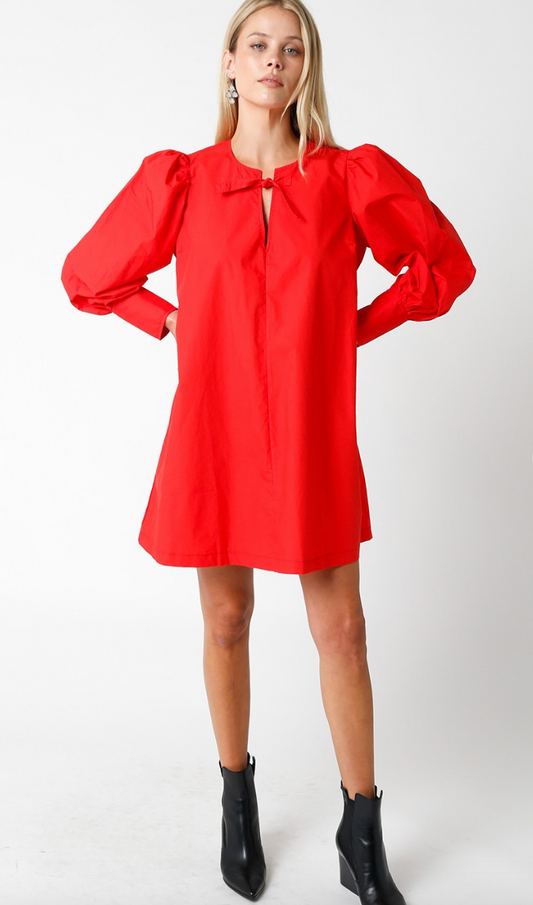 Puff Sleeve Dress in Red